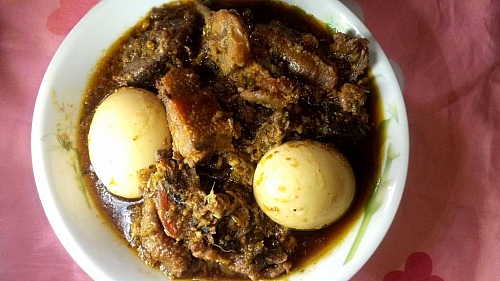 - Add the boiled eggs, stir and taste for salt and adjust if need be, then put off heat; Ayamase stew is ready.